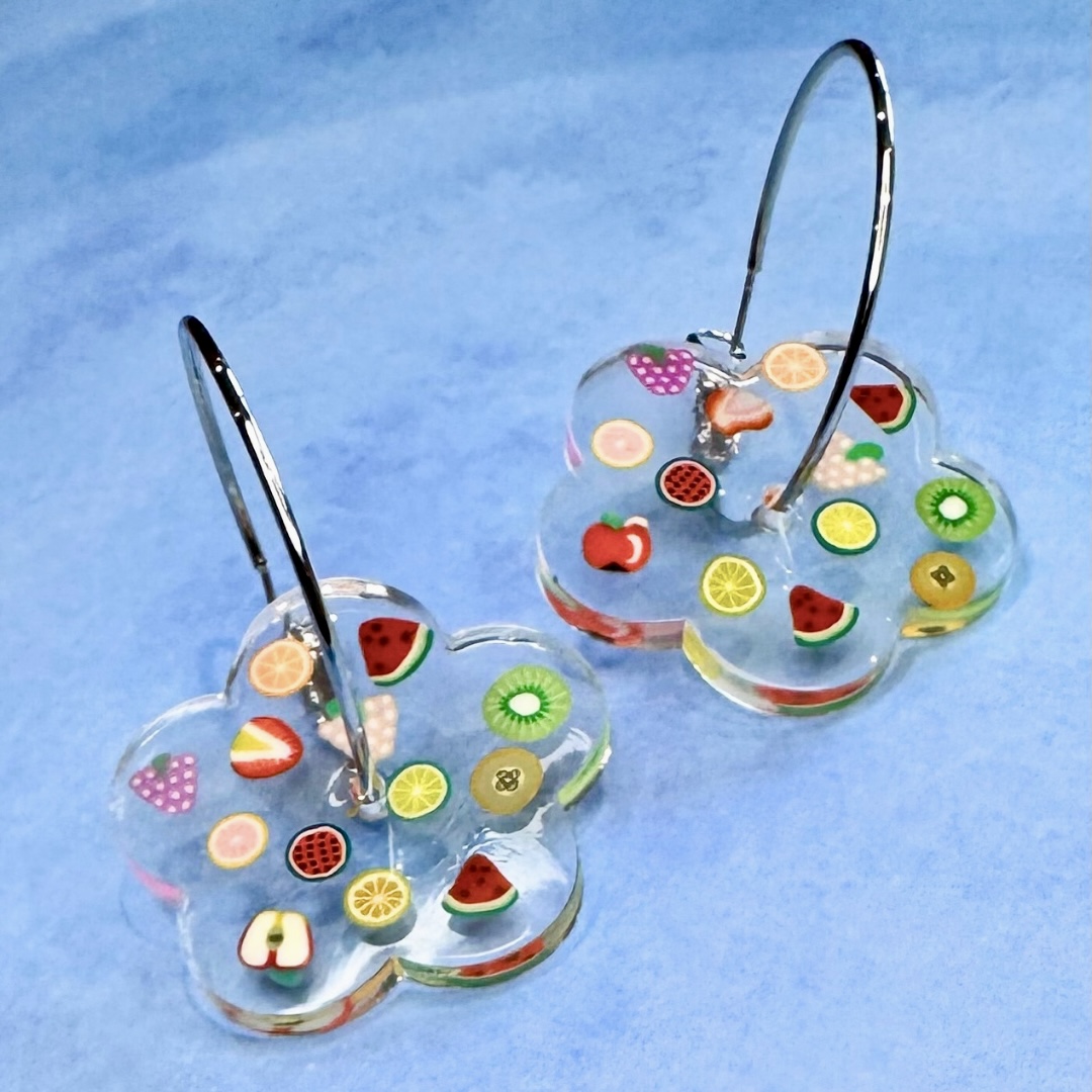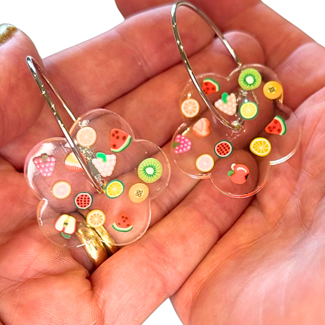 A pair of silver plated hoop measuring 3.5cm is included with the handmade fruit earrings.